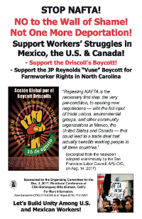 Call for Binational Fightback Conference to Stop NAFTA, Tear Down the Wall of Shame/Not One More Deportation, and Support Labor Rights on Both Sides of the Border