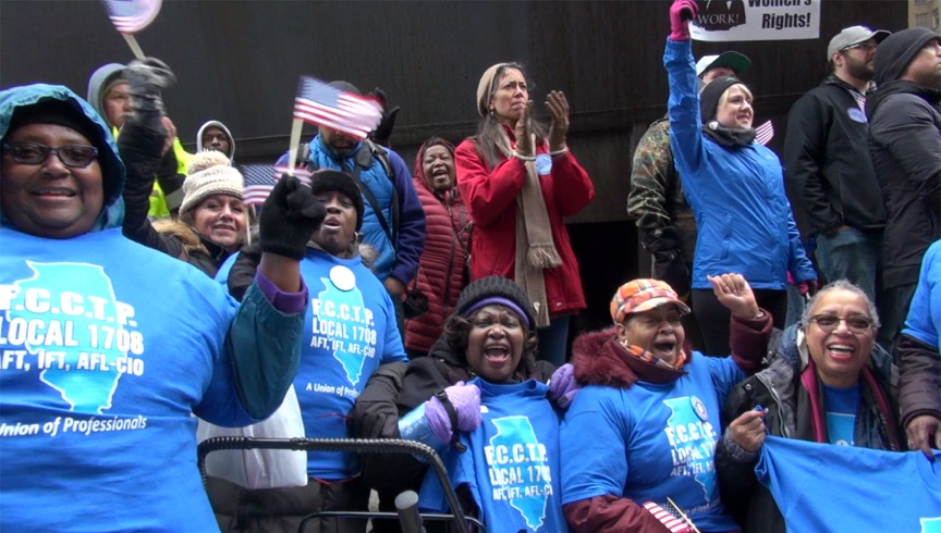Throughout the US union rallies protested the case now at the Supreme Court in JANUS vs AFSCME, which seeks to weaken the ability of unions to make free-riders pay for the cost of union contracts. Oddly, the Chicago rally at Daley Center on February 24, 2018 showed an unusual combination of emotions: Anger and, unexpectedly, an almost festive atmosphere. Are we seeing here an army bottled-up for many years, having been denied the full freedom of engaging in all-out class war? Which now, as the days of open class battles draw near, sense the opportunities that will usher in a new, creative epoch? Includes speeches and interview extras recalling valuable lessons from the 1930s.