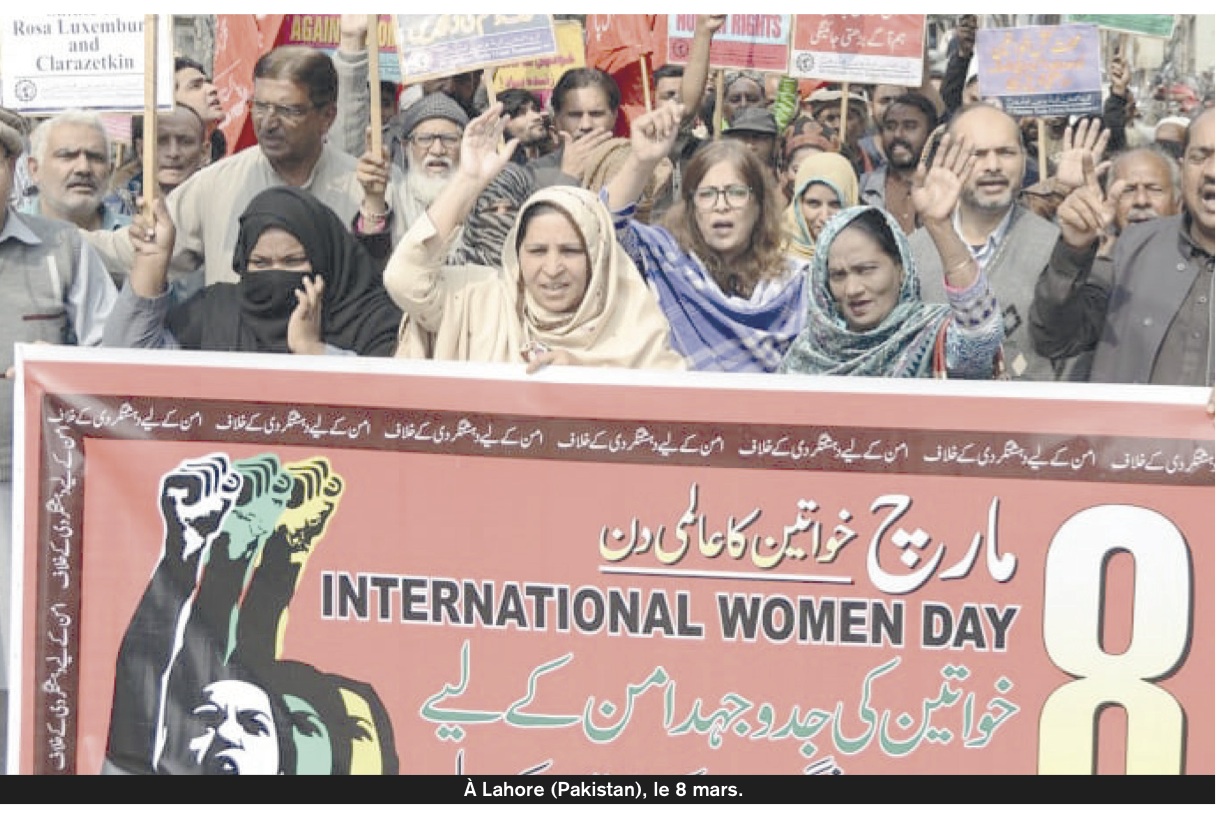 Rubina Jamil, General Secretary of the All-Pakistan Trade Union Federation (Pakistan), who demonstrated on March 8 in the streets of the industrial city of Lahore (see photo), had joined up initially with Hassina Sadet (Afghanistan) and Christel Keiser (France) to issue an International Appeal to Mobilize on March 8, 2019, in support of working women’s rights.