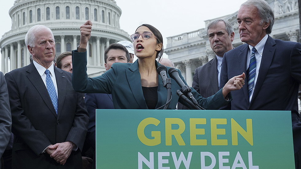 Representative Alexandria Ocasio-Cortez (D-NY) and Senator Ed Markey (D-MA) were joined by Democratic lawmakers from both the House and Senate on February 7, 2019, to introduce Green New Deal legislation.