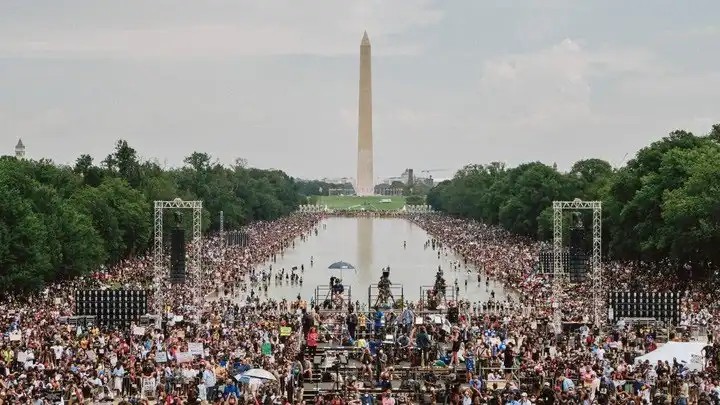 Benjamin: On Friday [August 28] tens of thousands of people converged on Washington, DC, to commemorate the 57th anniversary of Martin Luther King Jr’s historic March on Washington for Jobs and Freedom. The families of Jacob Blake, George Floyd, and Breonna Taylor led thousands who marched under the banner of Black Lives Matter. “We are tired of the mistreatment and the violence that we, as Black Americans, have been subjected to for hundreds of years,” said a press release for the march. “Like those who marched before us, we are standing up and telling the police, telling lawmakers, telling the people and systems that have kept us down for years, ‘Get your knee off our necks.’”