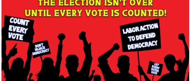 More than 500 demonstrations are being organized nationwide the afternoon and evening of Wednesday, November 4 by the broad-based Protect the Results coalition. Unions in many cities will be joining these actions. On Saturday, November 7 the labor movement has taken the lead in organizing what could be huge demonstrations to protect the integrity of the vote.