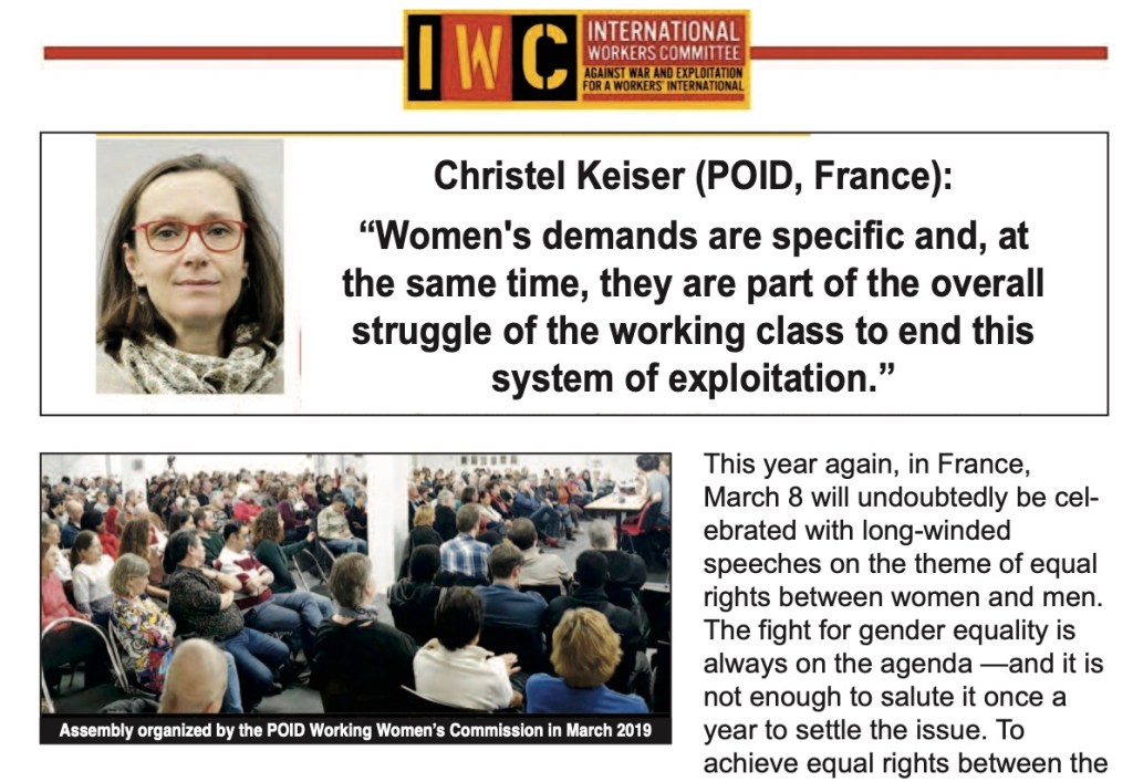 The discussion forum is being held in the framework of the Call issued by Sisters Christel Keiser (France) and Rubina Jamil (Pakistan) for the International Conference of Working Women, which will take place later this year. [See Call in issue no. 19 of The Organizer Weekly.]