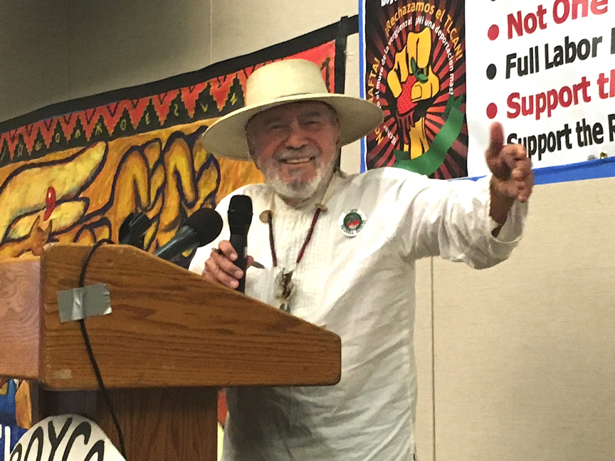 “The real issue,” he wrote in a 2018 contribution to the discussion bulletin of the Binational Conference Against NAFTA and the Wall of Shame, “is organizing and representing workers and the workers’ right to negotiate a union contract. The real issue is legalization for all immigrants who are in the United States to work because their home economies are being devastated by ‘free trade’ agreements like NAFTA and CAFTA.”