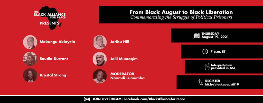 • From Black August to Black Liberation: Commemorating the Struggle of Political Prisoners – from Black Alliance for Peace