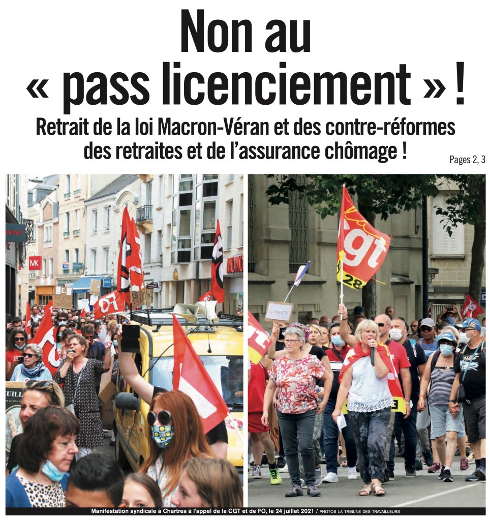 In Chartres, on Saturday July 24, more than 1,000 demonstrators responded to the call of the CGT and CGT-FO département-level unions (1) with the workers’ slogan, “Withdraw the layoff pass and the counter-reforms.” Why shouldn’t what happened in Chartres happen elsewhere? Why shouldn’t the united workers’ organizations call for demonstrations in every town and every département on these workers’ slogans? And why not on a national level?