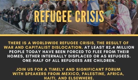 The forum, with more than 50 people in attendance, focused on the worldwide refugee crisis, a crisis that is primarily the result of war and capitalist dislocation – NAFTA and the updated USMCA “free trade” treaties are two examples. The number of refugees worldwide is astounding, and the refugee numbers increase each day. At least 82.4 million people – one in 95 worldwide – have been forced to flee from their homes, either internally displaced or as refugees (U.N. Refugee Agency).