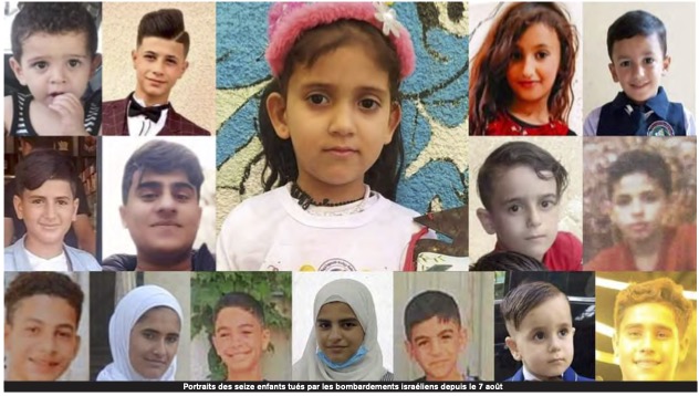 (Faces of the 16 children killed by the Israeli raids since August 7)