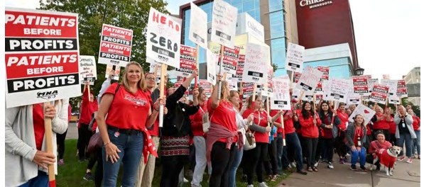 Strikes are on the rise: Mental health workers at Kaiser Permanente, organized by the National Union of Healthcare Workers (NUHW) here in California, just voted to renew their strike, rejecting management’s latest offer. They have been out for seven weeks. Nurses in Minnesota also went out on strike, as did teachers in Seattle.