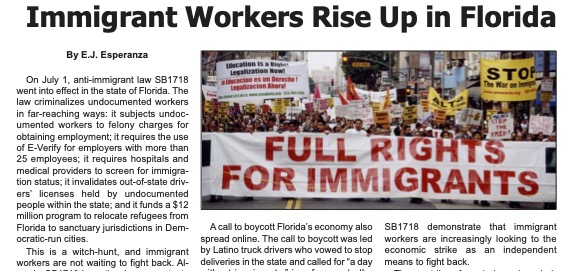 The spontaneous strikes by thousands of undocumented workers against SB1718 demonstrate that immigrant workers are increasingly looking to the economic strike as an independent means to fight back.