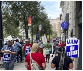Negotiations between the United Auto Workers (UAW) and the Big 3 automakers stalled again as the parties remain far apart on many issues. When Ford failed to change their wage offer after two weeks of negotiations, the UAW suddenly changed its tactics. Instead of announcing which new locals would join the “stand-up” strikes each Friday, on October 11, 8,700 workers at Ford’s most profitable plant in Louisville suddenly joined the strike. As we go to print, the total number of striking auto workers has risen to 45,000.