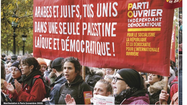POID contingent in November 2 Paris rally. Banner reads: “Arabs and Jews, All United in a Single Secular and Democratic Palestine”
