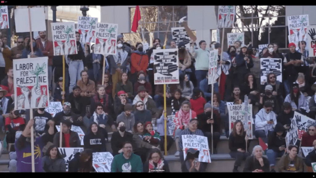 This has really ramped up since last month to the point where, for the first time ever, we’re seeing a quite mainstream national union in the United States, the American Postal Workers Union (APWU), putting out a strong statement calling for a cease-fire.